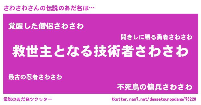 | 自動車の名前っぽいあだ名 | 『サンR』『サルトワパン』『プリサワ』 |