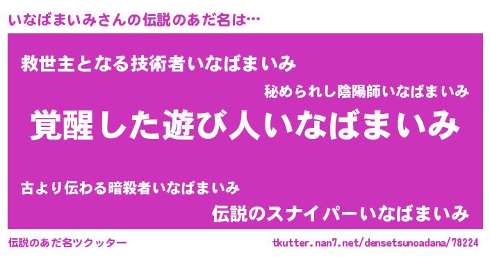| 男性向けラノベタイトル風あだ名 | 『この素晴らしい世界にいなばまいみを!』 |