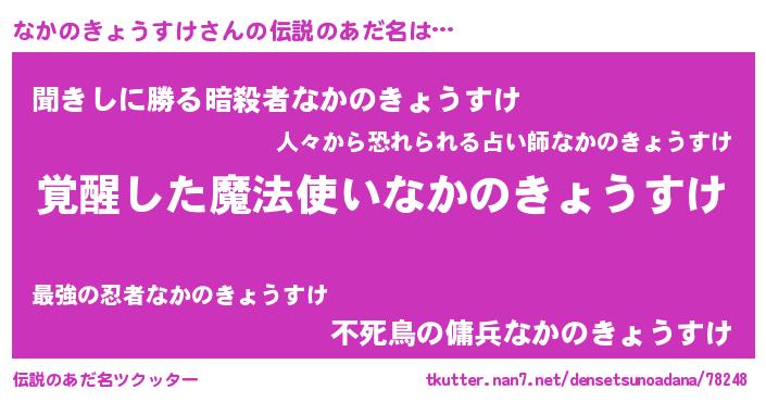 | 女子向けラノベタイトル風あだ名 | 『なかのきょうすけの玉の輿計画!』 |
