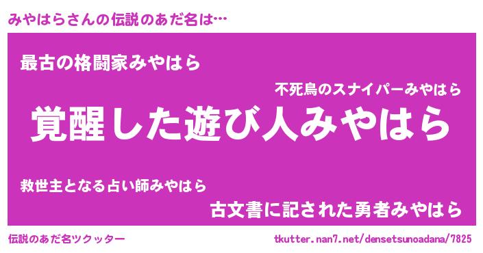 | ヒーロー風カッコイイあだ名 | 『究極戦士ミヤハラ』『銀牙騎士ミヤ』 |