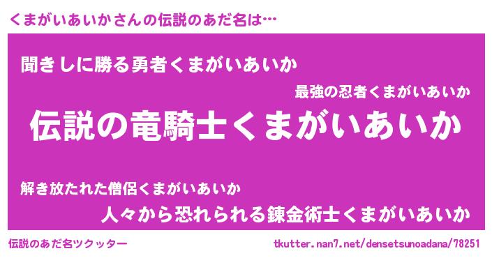 | ヒーロー風カッコイイあだ名 | 『スーパークマガイアイカ』 |