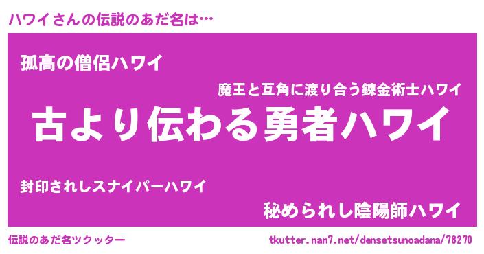 | ヒーロー風カッコイイあだ名 | 『ネオハワイ』『超時空戦士ハワイ』 |