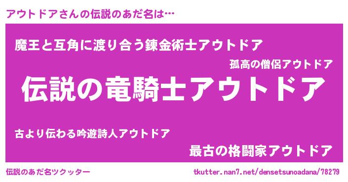 | ヒーロー風カッコイイあだ名 | 『スーパーアウトドア』『仮面アウダー』 |