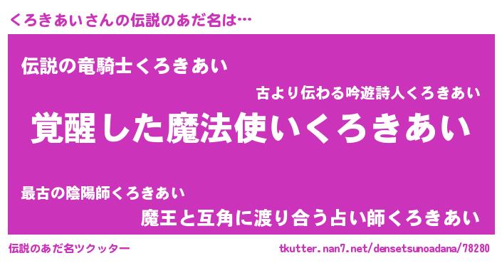 | 男性向けラノベタイトル風あだ名 | 『くろきあいの嫁は女の子じゃないと思った?』 |