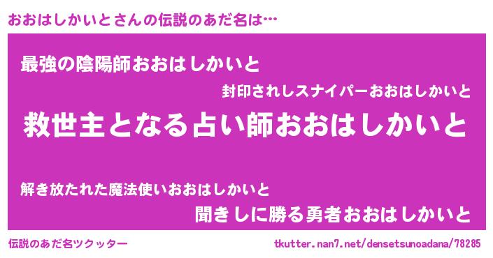 | 男性向けラノベタイトル風あだ名 | 『ノーゲーム・ノーオオハシカイト』 |