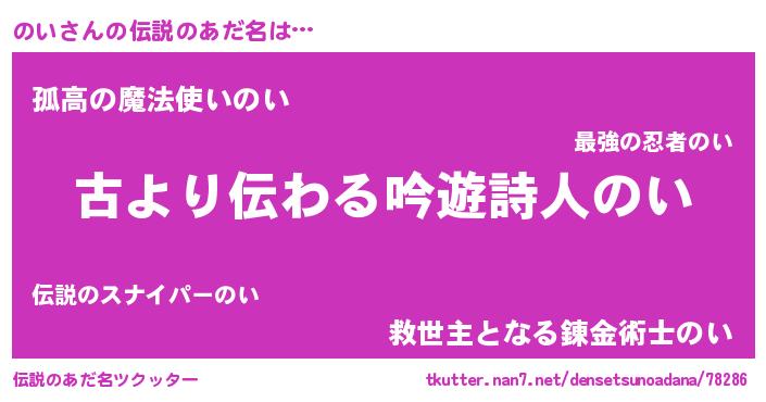 | 意味不明あだ名 | 『自称のい』『永久保存のい』 |