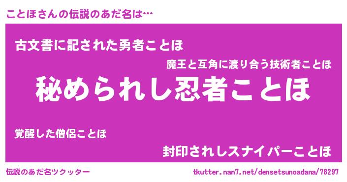 | ヒーロー風カッコイイあだ名 | 『仮面コトダー』『ウルトラことほマン』 |