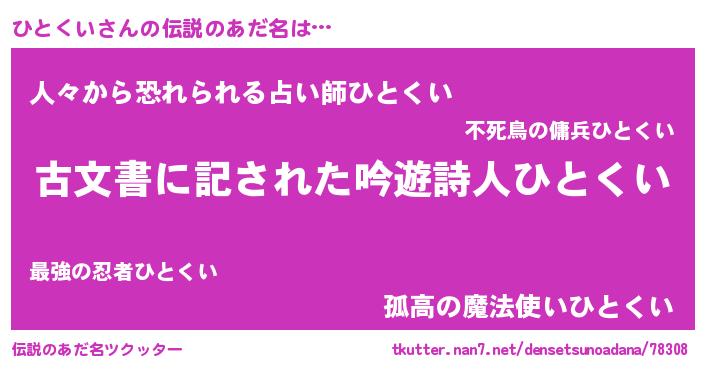 | ヘコむあだ名 | 『ひとくい(小並感)』『ひとを』 |
