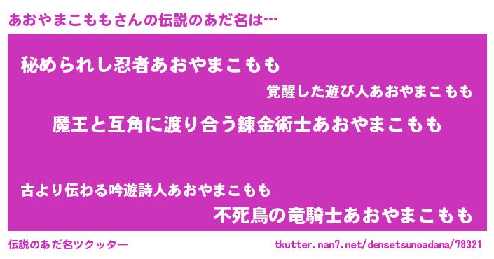 | ヒーロー風カッコイイあだ名 | 『慈愛の使者あおやまこもも』 |