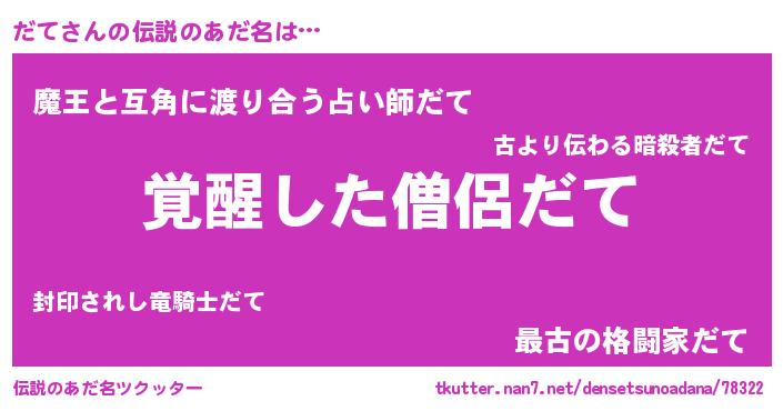 | ヒーロー風カッコイイあだ名 | 『究極戦士ダテ』『幻影騎士ダテ』 |