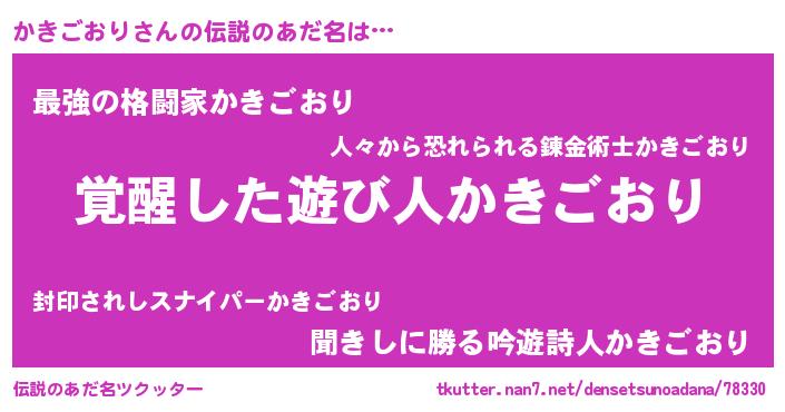 | 意味不明あだ名 | 『自称かきごおり』 |