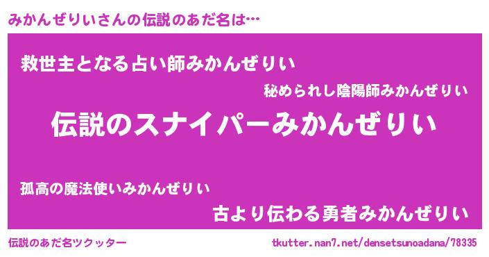| 意味不明あだ名 | 『住所不定無職みかんぜりい(79歳)』 |