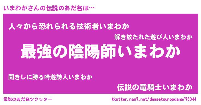 | 意味不明あだ名 | 『いまわかフォーエバー』『自称いまわか』 |