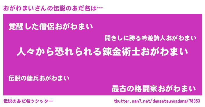 | ポケモン風あだ名 | 『オックウザ』『ヒオガワマイ』 |