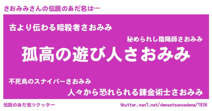 | 意味不明あだ名 | 『とにかく怪しいさおみみ』 |