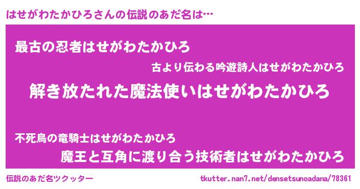 | 意味不明あだ名 | 『とにかく怪しいはせがわたかひろ』 |