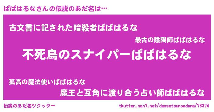 | 胡散臭い通販商品みたいなあだ名 | 『モテモテ間違いなし霊験あらたかなお札…その名も「ばばはるな」』 |