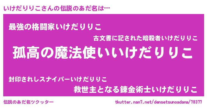 | 胡散臭い通販商品みたいなあだ名 | 『信頼と実績のサプリメント…その名も「いけだりりこ」』 |