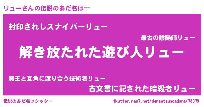 | ヒーロー風カッコイイあだ名 | 『魔戒騎士リュ』『超時空戦士リュー』 |