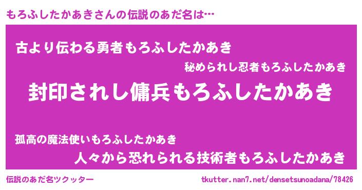 | 男性向けラノベタイトル風あだ名 | 『モロフシタカアキアートオンライン』 |