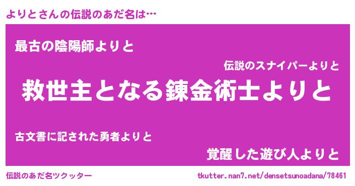 | ヒーロー風カッコイイあだ名 | 『天空の使者よりと』『天弓騎士ヨリ』 |