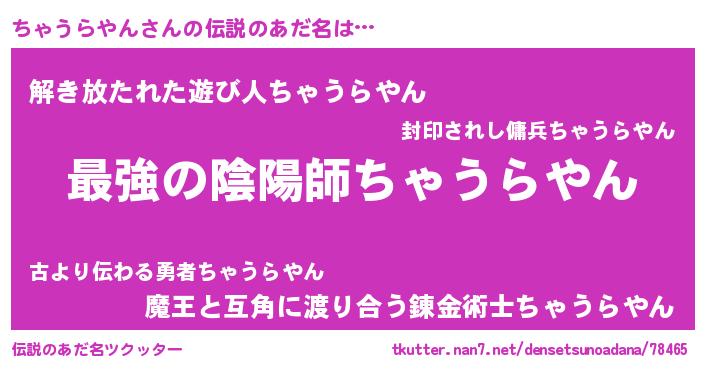 | 男性向けラノベタイトル風あだ名 | 『ちゃうらやんに滅ぼされるだけの簡単なお仕事です』 |