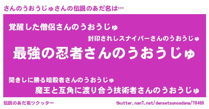 | 男性向けラノベタイトル風あだ名 | 『この素晴らしい世界にさんのうおうじゅを!』 |