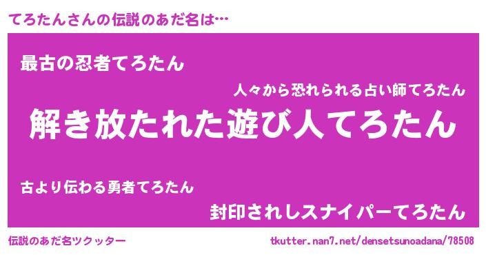| 意味不明あだ名 | 『とにかく怪しいてろたん』 |