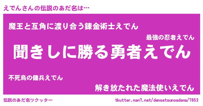 | 意味不明あだ名 | 『永久保存えでん』『自称えでん』 |