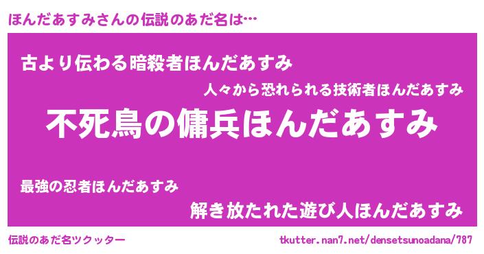 | 胡散臭い通販商品みたいなあだ名 | 『モテモテ間違いなし水晶球…その名も「ほんだあすみ」』 |