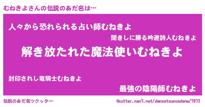 | 意味不明あだ名 | 『自称むねきよ』『むねきよフォーエバー』 |