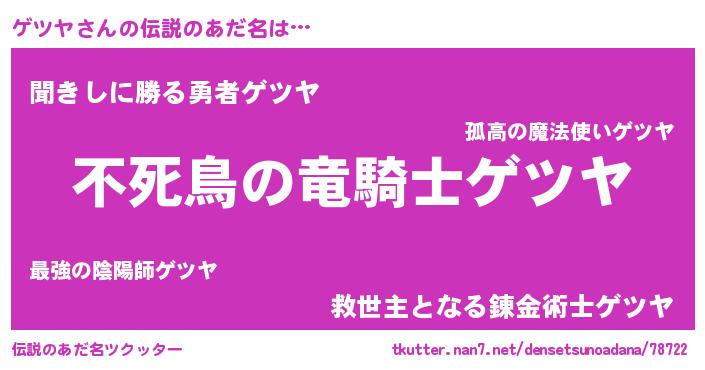 女子向けラノベタイトル風あだ名 | 『ゲツヤアンティーク』 |