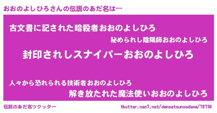 | 意味不明あだ名 | 『自称おおのよしひろ』 |