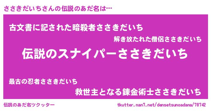 | 男性向けラノベタイトル風あだ名 | 『ササキダイチスレイヤー』 |