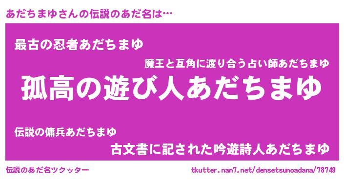 | 意味不明あだ名 | 『住所不定無職あだちまゆ(81歳)』 |