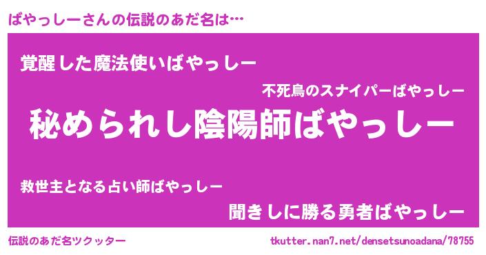 | 欧米人風あだ名 | 『ばやっしークリステル』 |