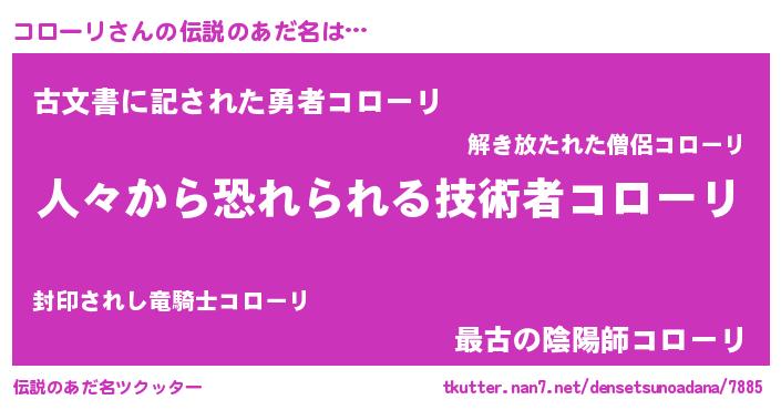 | ヒーロー風カッコイイあだ名 | 『ウルトラ戦士コローリ』『仮面コロダー』 |