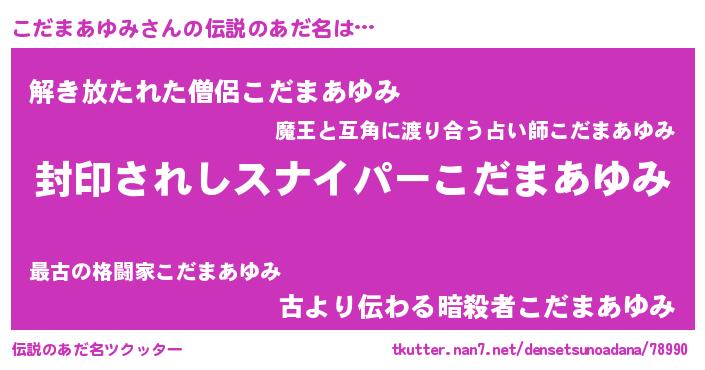 | 胡散臭い通販商品みたいなあだ名 | 『億万長者になれる霊験あらたかなお札…その名も「こだまあゆみ」』 |