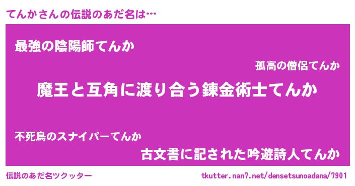 | 男性向けラノベタイトル風あだ名 | 『Re:てんかから始める異世界生活』 |