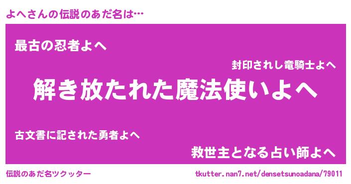 | ヒーロー風カッコイイあだ名 | 『魔戒騎士ヨヘ』『ウルトラよへマン』 |