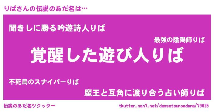 | 意味不明あだ名 | 『とにかく怪しいりば』『永久保存りば』 |