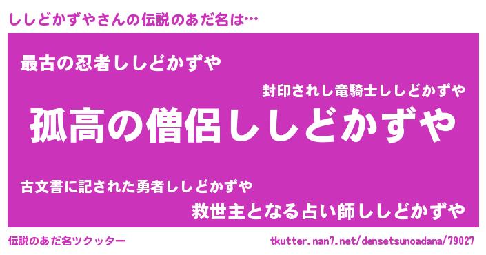 | ヒーロー風カッコイイあだ名 | 『暗黒騎士シシ』『スーパーシシドカズヤ』 |
