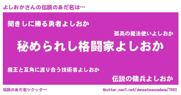 | 意味不明あだ名 | 『住所不定無職よしおか(1歳)』 |