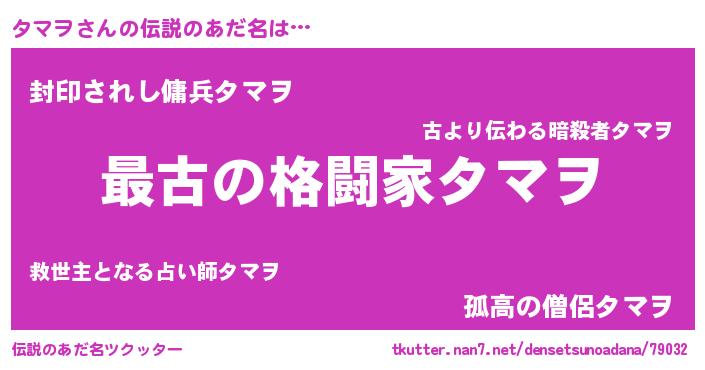 | ヒーロー風カッコイイあだ名 | 『仮面タマダー』『ウルトラタマヲマン』 |
