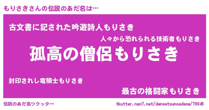 | 意味不明あだ名 | 『とにかく怪しいもりさき』 |