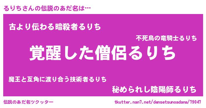 | 意味不明あだ名 | 『ニラ科るりち属』『永久保存るりち』 |
