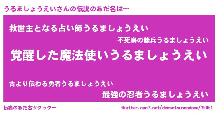 | 胡散臭い通販商品みたいなあだ名 | 『全米が絶賛したサプリメント…その名も「うるましょうえい」』 |