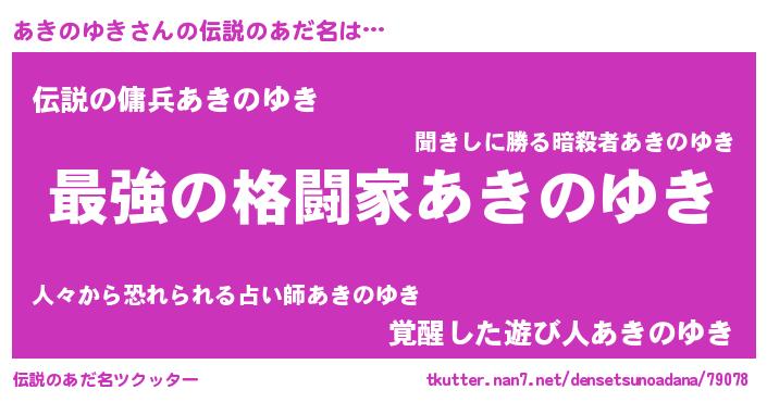 | 意味不明あだ名 | 『あきのゆきフォーエバー』 |
