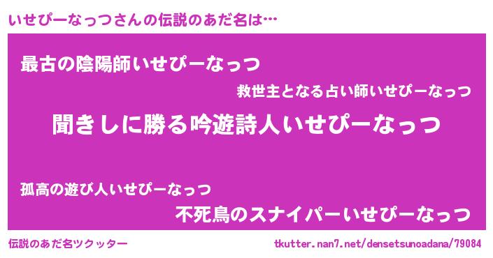 | 意味不明あだ名 | 『永久保存いせぴーなっつ』 |