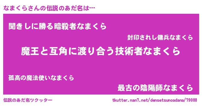| ヒーロー風カッコイイあだ名 | 『愛の使者なまくら』『ネオナマクラ』 |